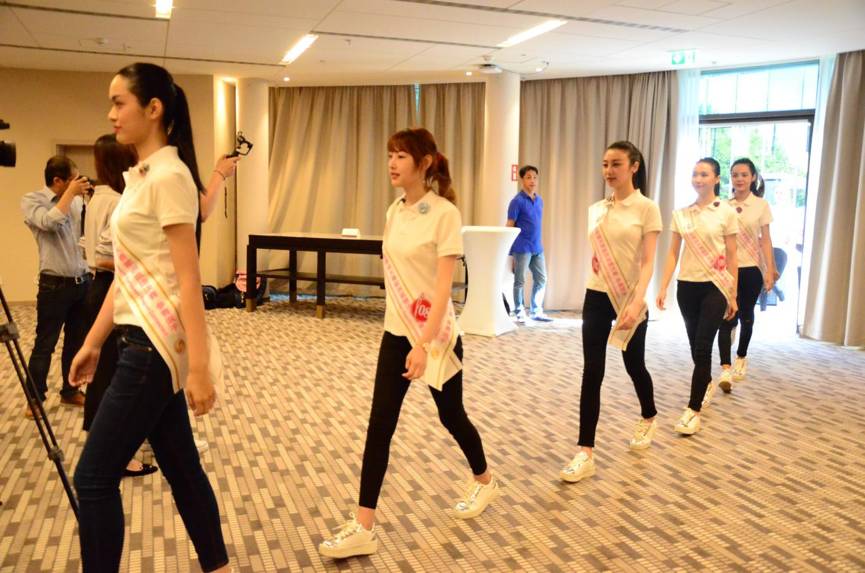 2017年,中華小姐環球大賽歐洲大賽選拔從4月底啓動到6月中截止報名,歐洲組委會共收到了400多位18-28歲歐洲華裔美女的踊躍報名。主持人李樂樂簡要介紹來賓後,萬衆期待的12位佼佼者從廳外魚貫而入、分列臺上——她們統一着白T恤和牛仔褲、束馬尾辮,簡單裝束更襯托出挺拔身材和青春活力,年輕笑顏和昂揚氣質讓大家感到眼前一亮,也有來賓不禁翻看起座位上的2017中華小姐環球大賽歐洲賽區特刊,想進一步記取這些美麗面孔的名字、瞭解她們的背景。