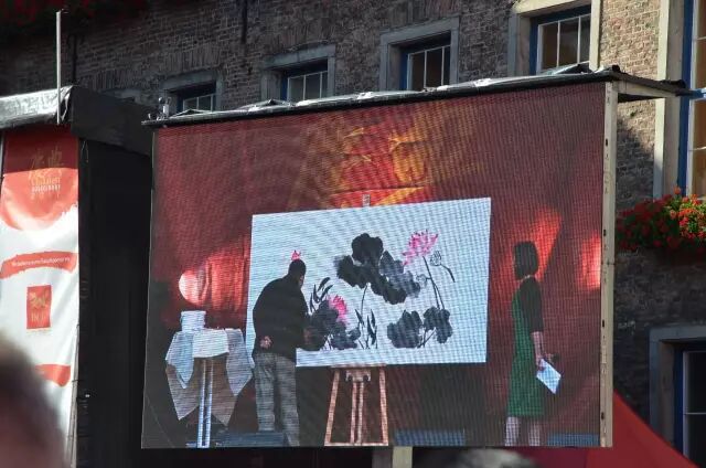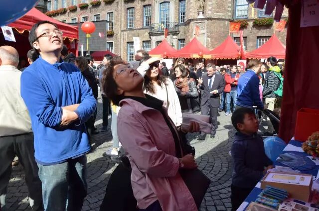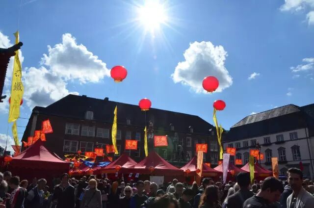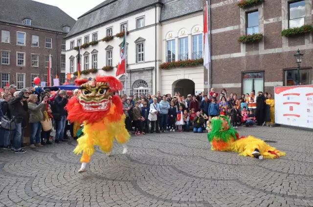 沒錯,這就是上週六在杜塞爾多夫Marktplatz舉行了整整一天的第七屆杜塞爾多夫中國節。在這一年一度的中國主題盛會上,市政廳廣場飄揚着紅色的慶典旗幟、氣球和風箏,舞臺上全天節目不斷,圍繞揚·威廉紀念碑幾十個展位依次排開,喜迎八方來客。