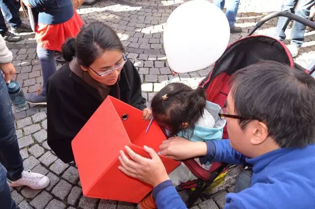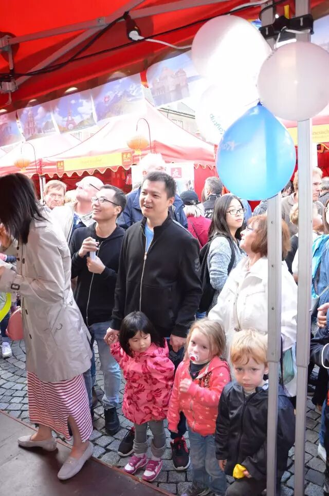 杜塞爾多夫孔子學院也是第七年參加這個盛大的節日了,他們把簡單的漢語詞句印在繽紛的氣球上,用有趣的遊戲教大家學漢語。