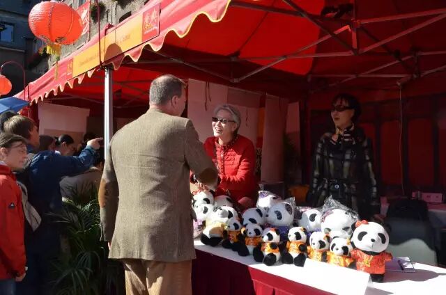 中國駐杜塞爾多夫總領館帶來了書法展示和深受德國小朋友喜歡的熊貓毛絨玩具。