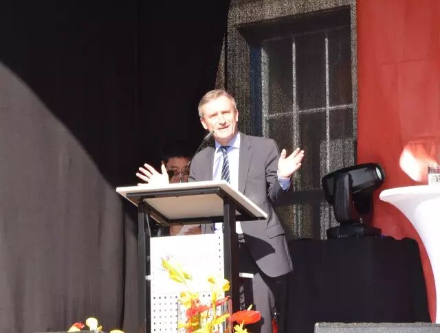 在剛剛過去的教師節才向杜伊斯堡發出一班中歐班列的瀋陽市也派來代表——瀋陽市人大聶洪生副主任,他介紹了瀋陽與杜伊斯堡的合作情況,表達了歡迎來賓們去訪瀋陽、祝中國節活動圓滿成功的美好願望。