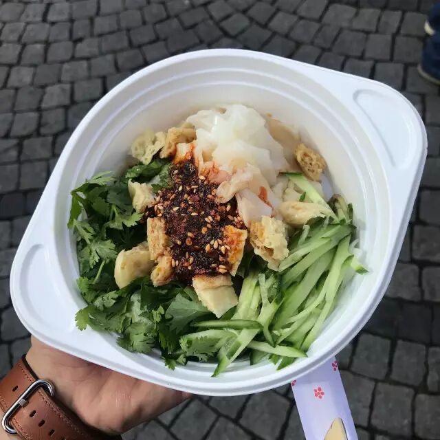 除了拉麪,涼皮、豆腐腦、煎餅果子、烤羊肉串、手工沙琪瑪、現做大肉包等大中華美食也紛紛登場。別以爲它們只能應付外國人,走在巡攤的人流中時不時都能聽到嘖嘖稱讚食物正宗美味的中文。
