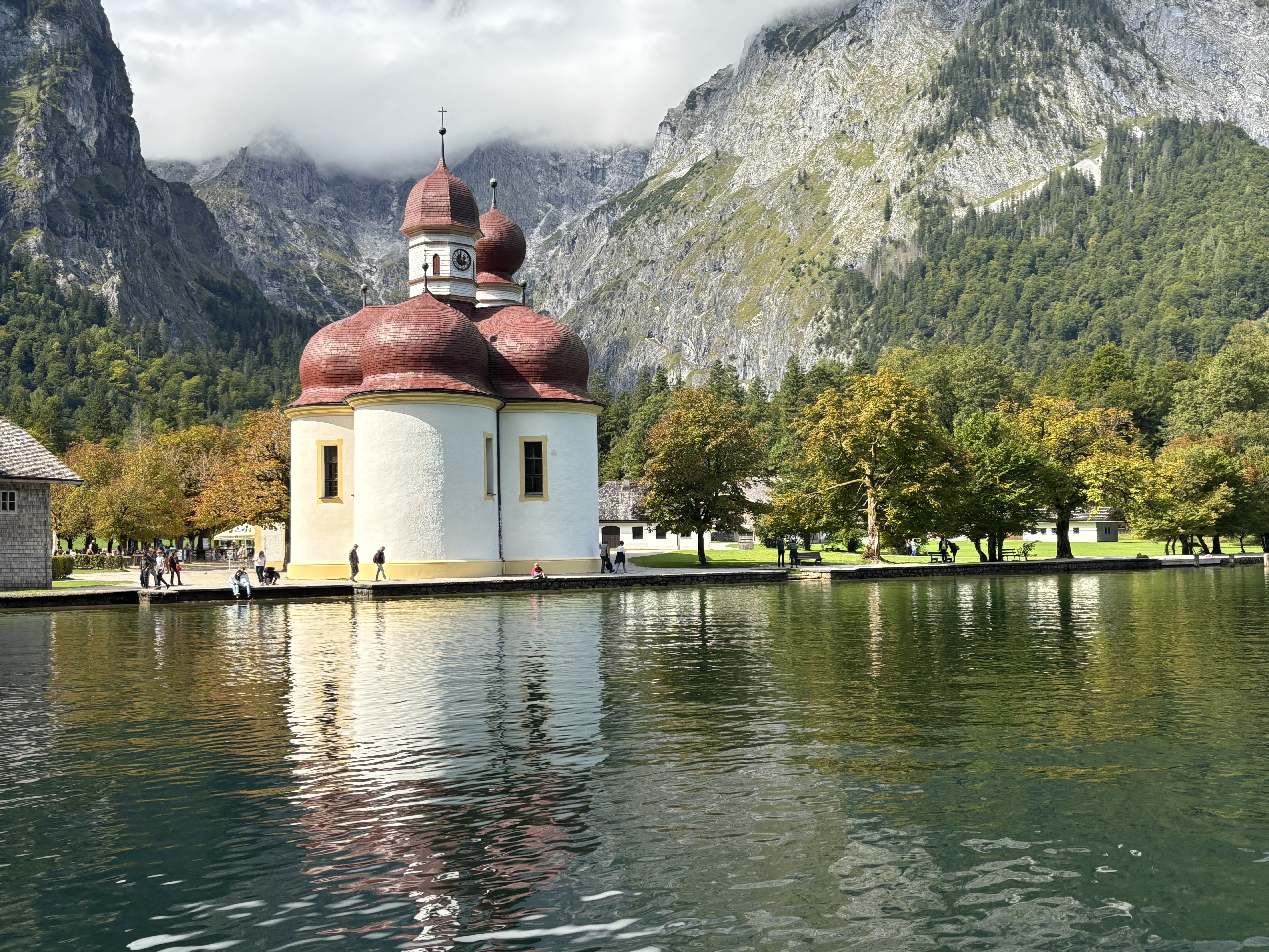 國王湖是巴伐利亞阿爾卑斯山區中著名的湖泊,也是德國較深的湖泊。它又瘦又長,處在羣山環繞之中,俊朗的山峯和寧靜的湖水相映成趣,沁人的高山湖水乾淨到可以直接飲用。湖面水平如鏡,碧勝美玉,四面環山,山勢險峻,感覺像是哪位巨人在這山間橫劈一斧,乘船行於其間,猶如仙境一般,被譽爲德國醉美的湖泊。 據說國王湖的名字就是來源於這四圍的高山,一個像國王,一個像王後,中間的小山巒則是他們的孩子,遠處還有一座躺下的巫婆峯。