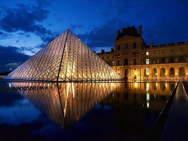 羅 浮宮 (Louvre) 收藏品達三十萬件由中國建 築師貝聿銘所設計的地下進口,外形爲透明金字塔狀的入口建造完成,羅浮宮成爲一個完整的博物館。目前 其藏品包括:古東方、古埃及、古希臘和羅馬文物;雕 刻、繪畫、素描及工藝品等七大部門。當然,世界各國來到這世界三大博物館之一的羅浮宮博物館,最重要 的是爲羅浮宮三寶:米羅的維納斯、勝利女神和蒙娜麗莎 的微笑。