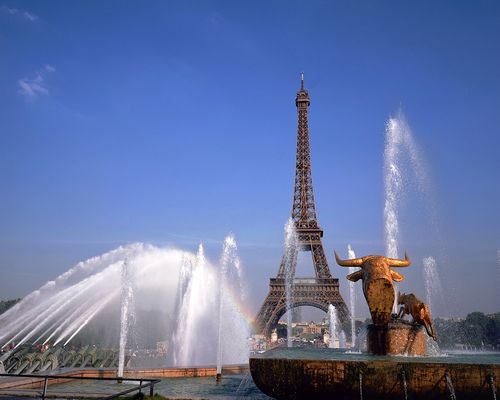 埃 菲爾鐵塔(Eiffel Tower)埃菲爾鐵塔是巴黎的象徵,它是爲迎接世界博覽會在 1889年建成的。塔高320米,是十分輕巧的交互式結構,總共 不到一萬五千個金屬體焊在一起而成的。鐵塔分爲三層,可乘坐電梯到達最高點。也有一些勇敢 的參觀者拾階登塔,別有一番情趣。在塔頂遠眺,晴天時可觀賞 70公裏內的景色。塔的每一層都設有酒吧和餐館,可供遊客小憩。其中的凡爾納餐廳很有名氣。
